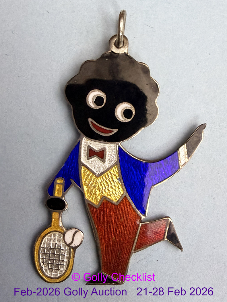 DESCRIPTION: Offered for sale is a rare 1980's Silver Pendant of the Tennis Player in action position striking the ball. Issued for only a short time during the late 1970's/early 1980's. Considered by many collectors to be some of the most beautiful of the Golly items issued by Robertsons, the way the silver detailing has been carefully crafted to show through the transparent enamel is clearly the work of a master craftsman.