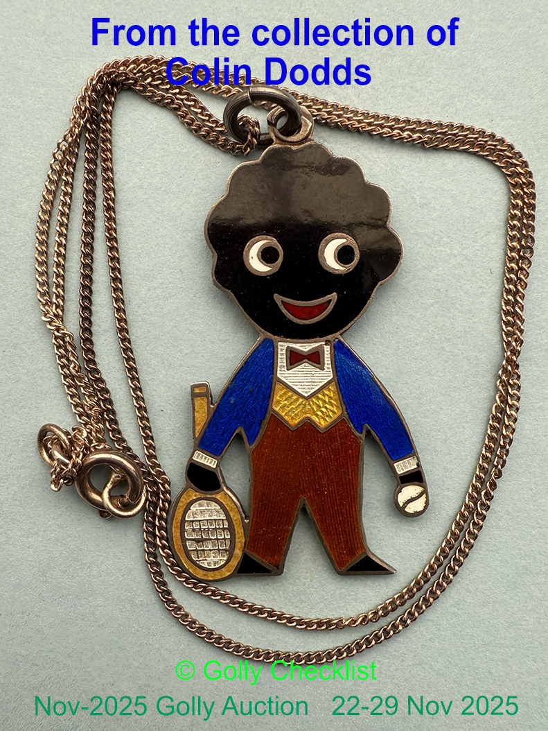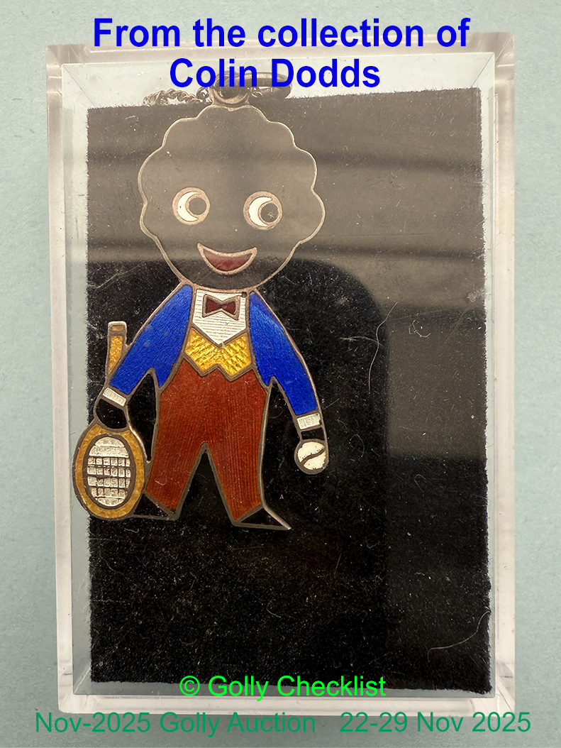 DESCRIPTION: Offered for sale is a rare 1980's Silver Pendant of the Tennis Player in Standing position. Issued for only a short time during the late 1970's/early 1980's. Considered by many collectors to be some of the most beautiful of the Golly items issued by Robertsons, the way the silver detailing has been carefully crafted to show through the transparent enamel is clearly the work of a master craftsman.