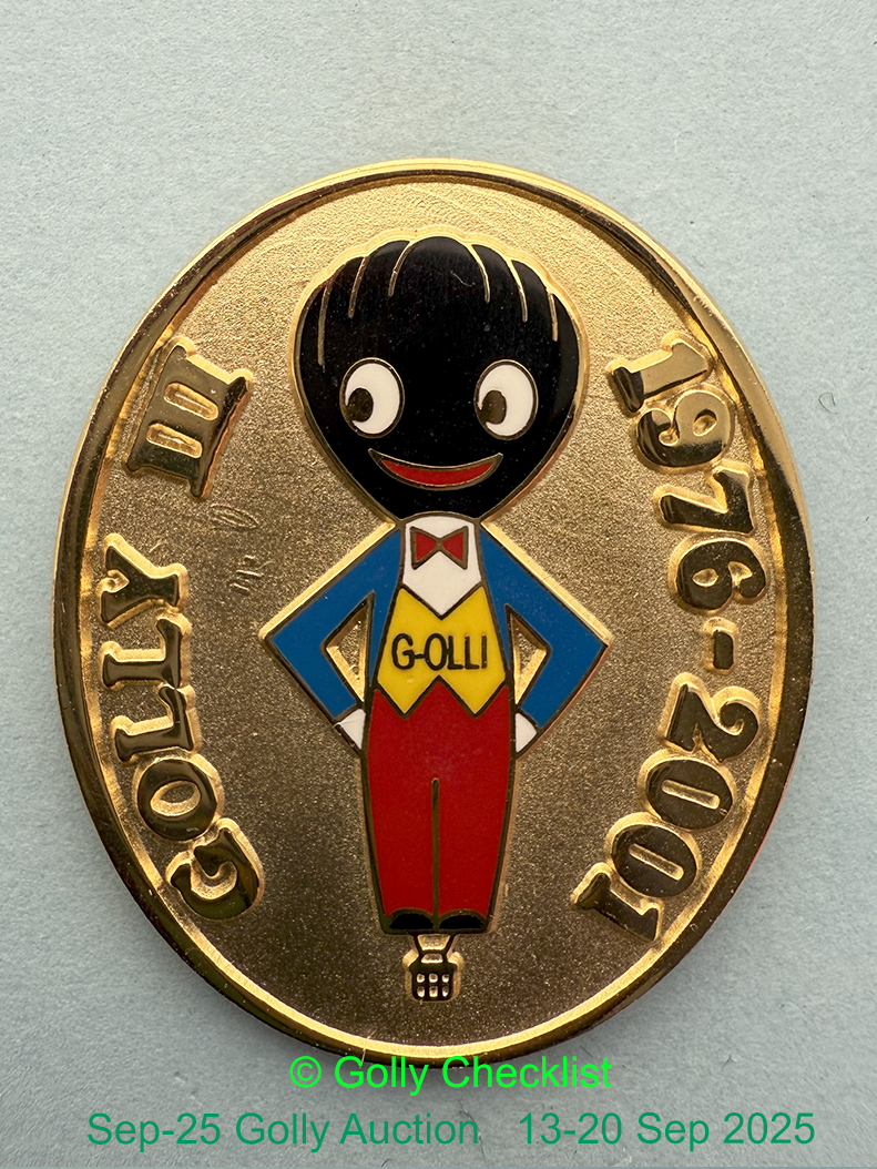 DESCRIPTION: The Golly III Balloon badge in gold coloured metal with butterfly pin. This example is 35mm high.