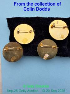 DESCRIPTION: The set of four circular balloon badges showing Golly Balloons I, II, III & IV. This is the version with a blue background. A version with a white background was produced at the same time. The blue background is more scarce.