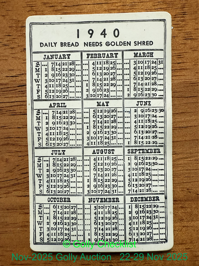 Golly Checklist No. F12 - 1940