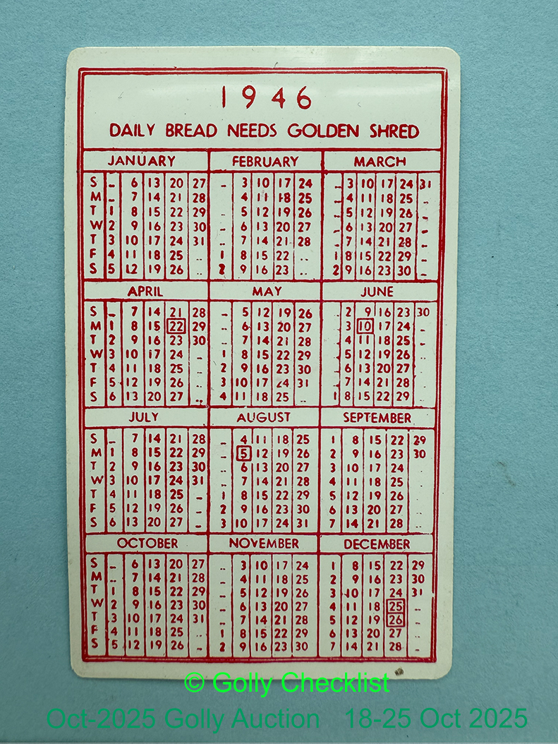 GOLLY GUIDE REFERENCE: | SECTION F: MISC PAPER EPHEMERA: CALENDARS |