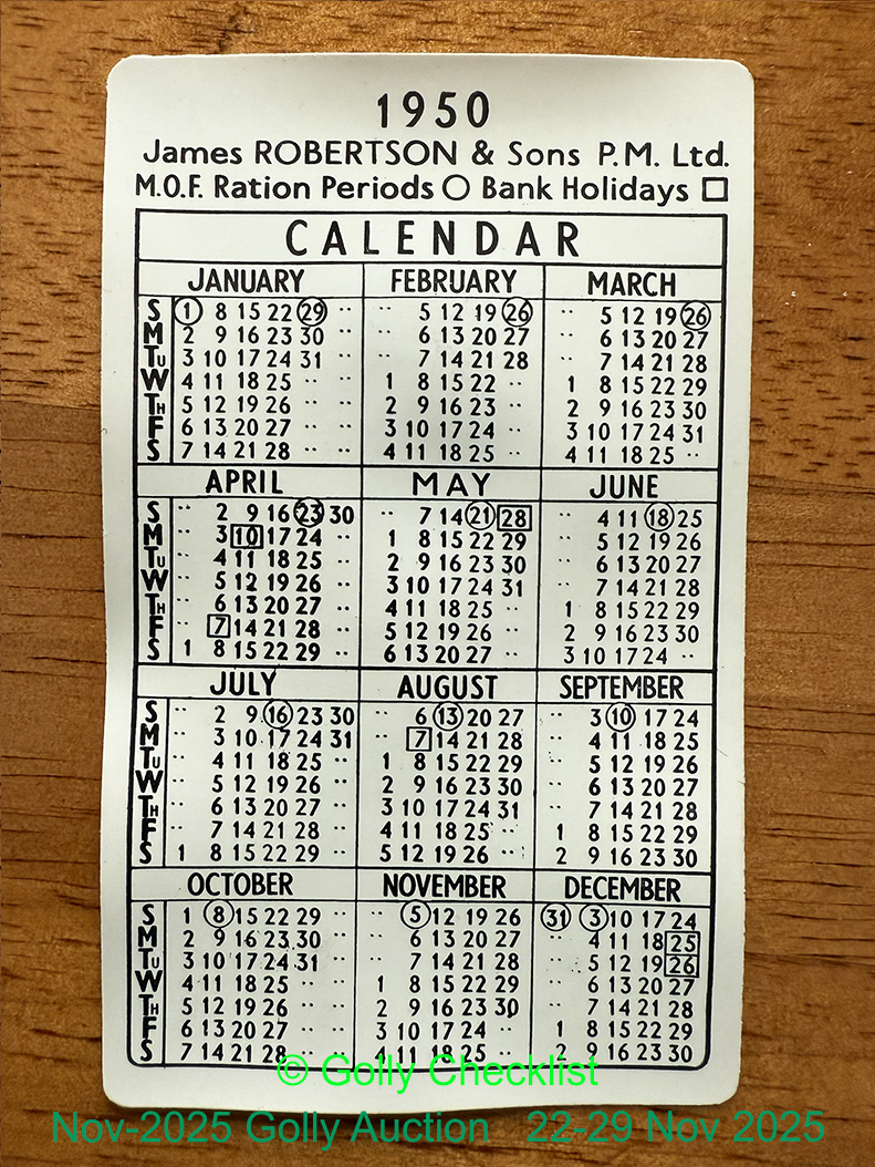 | GOLLY GUIDE REFERENCE: | SECTION F: MISC PAPER EPHEMERA: CALENDARS |
