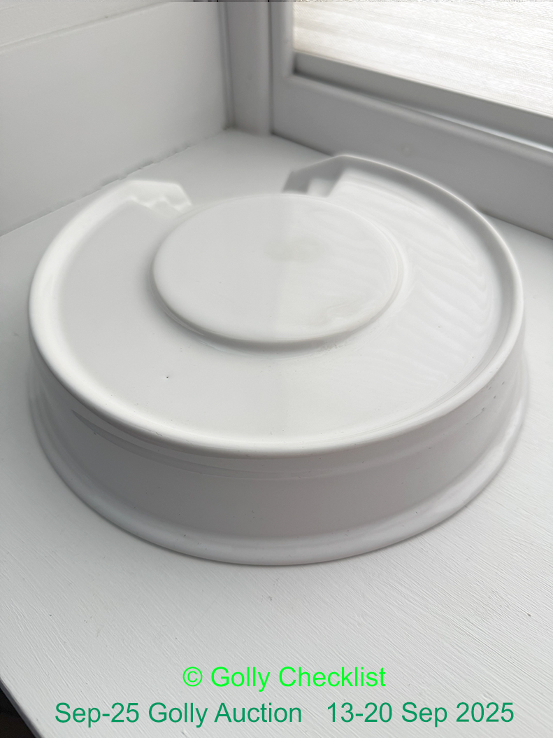 DESCRIPTION: An original Carltonware Bandstand fully glazed white but without the usual decorative transfers applied. The unpainted bandstand is a genuinely rare item. Following the Carltonware company’s financial problems, a quantity of stock was sold on to Potteries Wholesale Ltd of Fordingbridge. They included some undecorated white bandstands. Many went into a skip, but luckily for collectors someone recognised what they were and a small number were saved. The company offered them direct to collectors back in 1992, and this is the source of the plain bandstands.