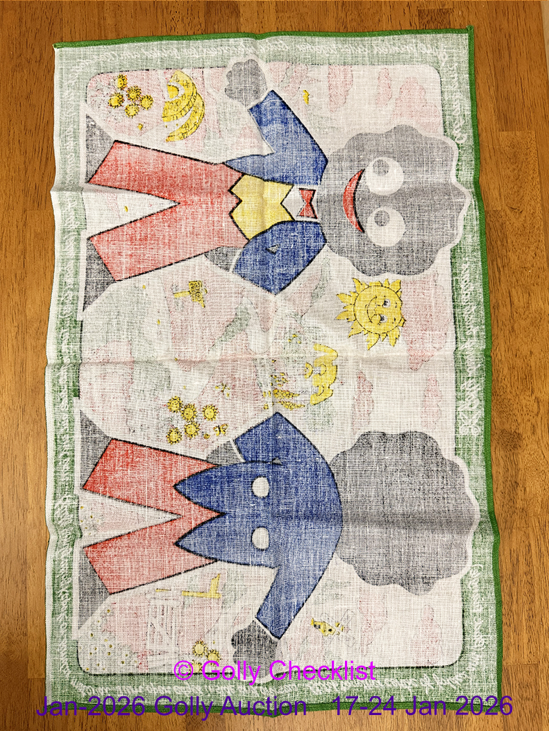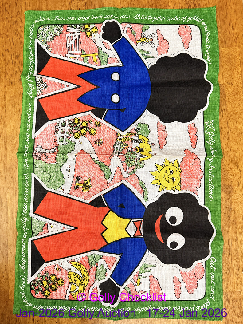 DESCRIPTION: Genuine Robertsons tea towel 18inchs x 29 inchs. Intended to be cut out and made into a golly doll.