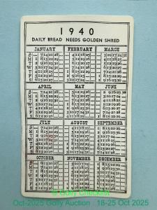 DESCRIPTION: Credit card sized pocket calendar dated 1940.