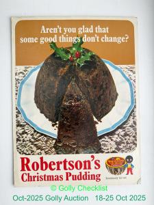 DESCRIPTION: Offered for sale is an original shop display Showcard advertising Robertsons Christmas Pudding. Printed single sided on thick brown card with the slogan "Aren't you glad ...