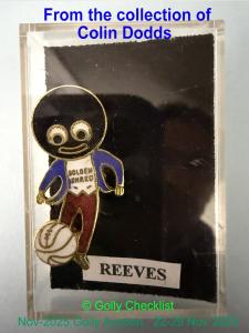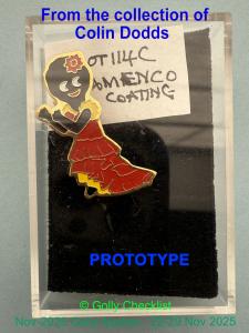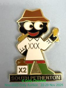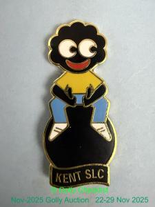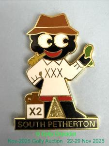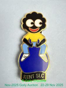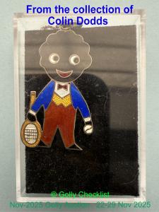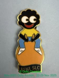 DESCRIPTION: The farmer themed SLC Golly badge in gold with enamelled eyes. Only five of these designs were produced. They were given to winners of the of the gherkin eating competition (x3), ...