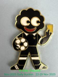 DESCRIPTION: This badge is the Referee with yellow card which was produced for the sixth SLC which took place close to Robertsons HQ at Droylsden Manchester on 6-Apr-2003. The referee with yellow...