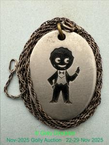 DESCRIPTION: Offered for sale is a genuine Robertsons Golly pendant. This is the oval disk with black golly stamped in - on original chain. This is the usual issue pendant from this time. ...