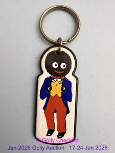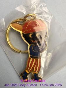 DESCRIPTION: A genuine Robertson's Keyring in the form of a golly stamped into metal hanging on a black plastic fob. This is one of the scarcely seen keyrings. issued in 1978 it is likely to be ...