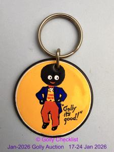 DESCRIPTION: A genuine Robertson's Keyring made by Dodo Designs. In the form of a metal insert and black plastic back in shape of a keyhole. Standard walking Golly on a white background. Made in ...