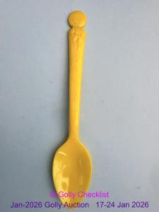 DESCRIPTION: Yellow plastic spoon with Golden Shred on handle and 1960's walking Golly at top. Used for tastings at shows and displays. A difficult and rare item to find. Makes an excellent ...