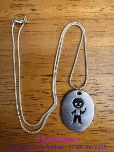 DESCRIPTION: Offered for sale is a genuine Robertsons Golly pendant. This is the oval disk with black golly stamped in - on original chain. This is the usual issue pendant from this time. ...