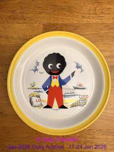 DESCRIPTION: A genuine Robertson's plate showing a one-arm raised Golly with a sea scene. Made by Barrett's of Staffordshire in 1980. Listed as D20 in the Golly Guide. This version has a ...