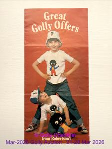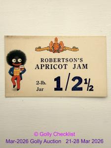 DESCRIPTION: A rare early Price List for 'Robertson's Apricot Jam' 2lb jar. Shows an early walking Golly with jar on left. From the 1930's. The coat of arms is marked 'BY ...