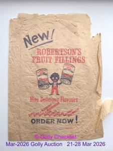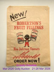 DESCRIPTION: Paper bag in exellent condition. Design shows 'Robertsons Fruit Fillings - Nine Delicious Flavours'.