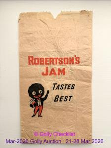 DESCRIPTION: Paper bag in fair condition. Design shows 'Robertson's Jam Tastes Best'.