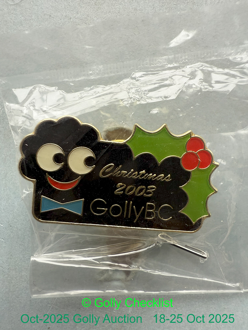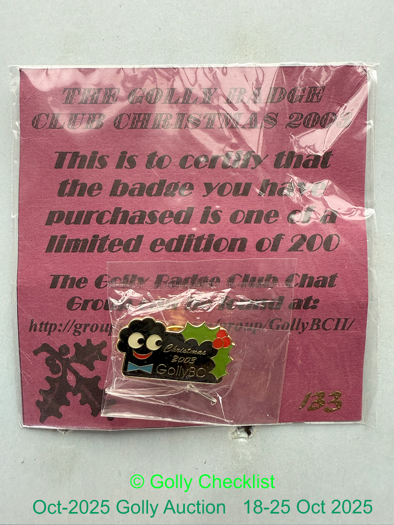 section W of the Golly Guide. The Yahoo!group was the precursor to the 'Robertons Badge Club' facebook group and remains the only Robertsons Badge collecting group endorsed by the Golly Checklist. There were 20 badges produced for members of the Yahoo!group. This one is the eleventh one issued. Listed as GBC11 in the Golly Guide. It was issued in December 2003.