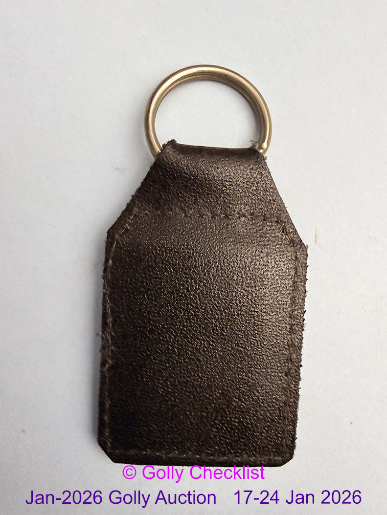DESCRIPTION: A genuine Robertson's Keyring in the form of a golly stamped into metal hanging on a black plastic fob. This is one of the scarcely seen keyrings. issued in 1978 it is likely to be missing from most collections. Great chance to add it to your collection.