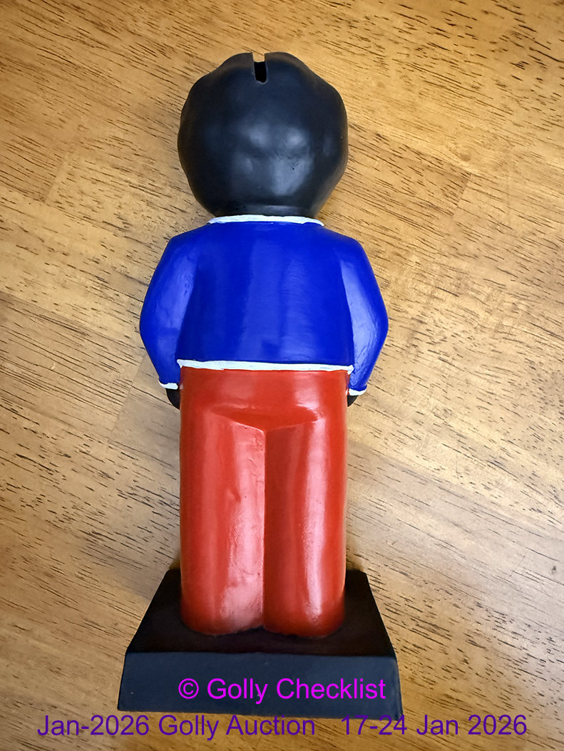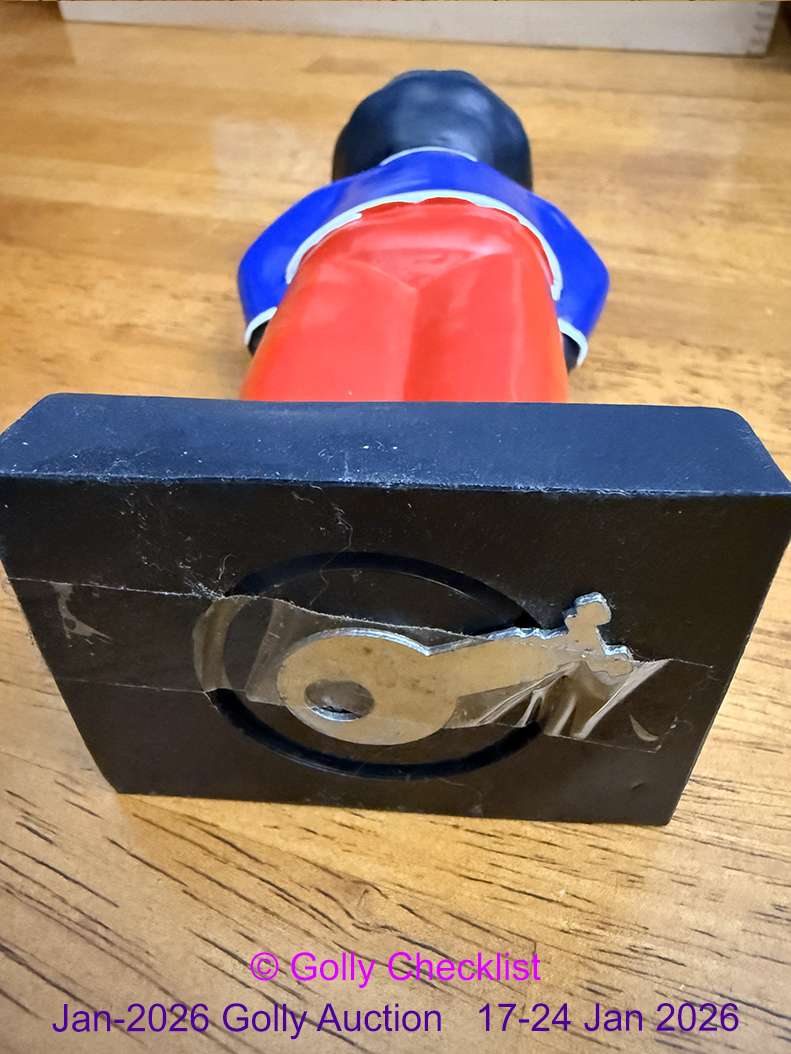DESCRIPTION: A genuine Robertsons Plastic Money Box. 21cm. In very good condition, with original key and original stopper on bottom. Issued in 1993.