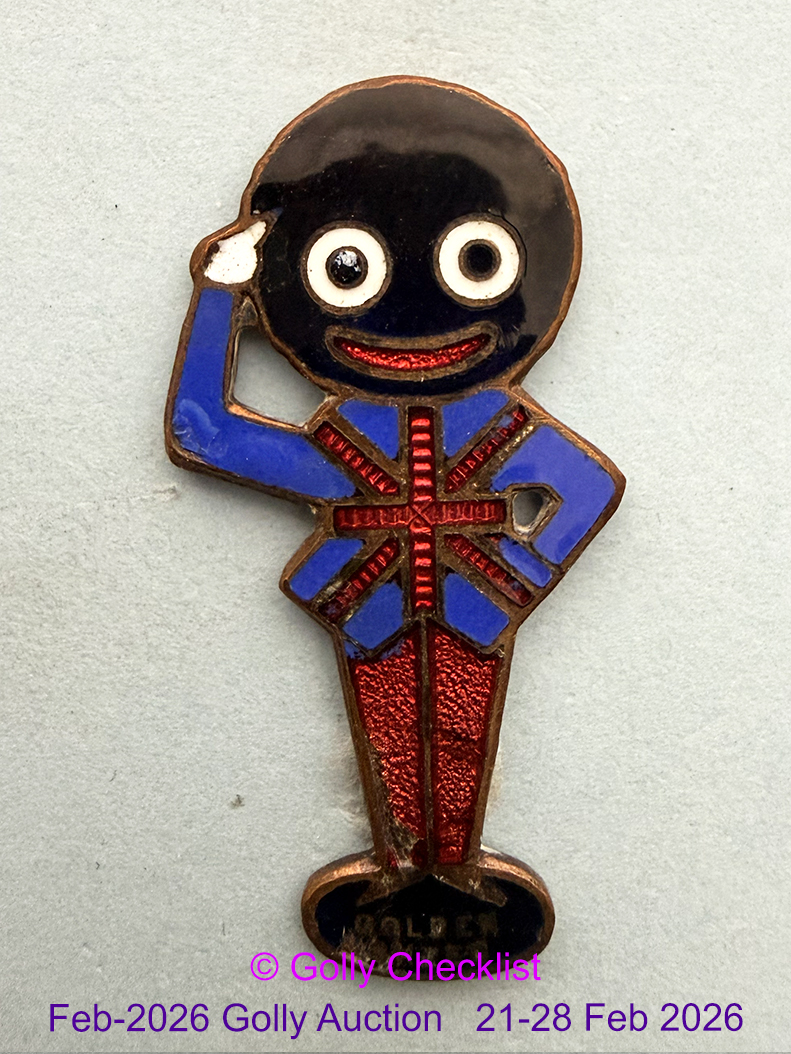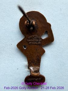 CONDITION: Presented for sale in perfectly collectable condition. Enamel to the top 3/4 of the badge is excellent, but the lower quarter (the legs) shows a small chip to golly's right leg (left as viewed) and two small sets of stress lines to golly's left leg (right as viewed). The thin silver coating to waistcoat is almost completely lost. Just small elements left to the waistcoat. The rear has original straight pin and a lovely patina. A great opportunity to add a very rare badge to your collection for a fraction of the usual price.