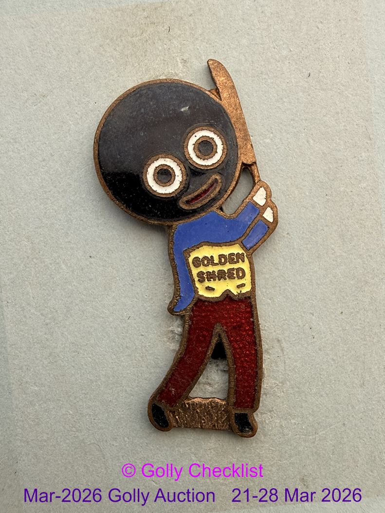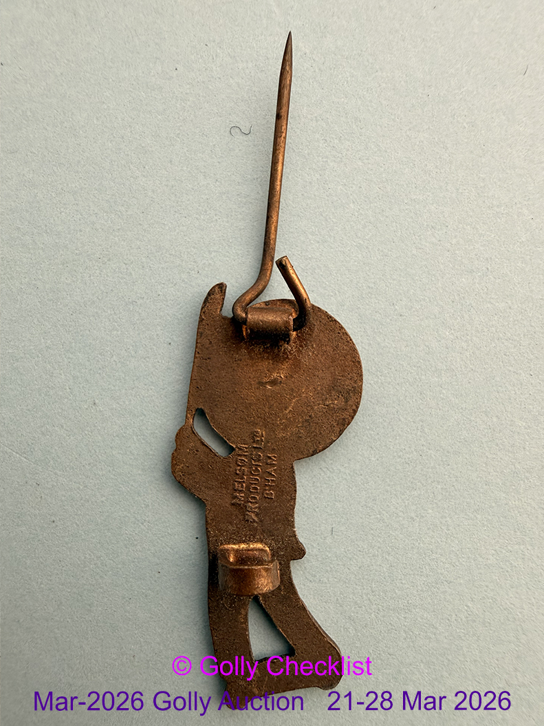 DESCRIPTION: A Cricketer Golly badge, in the prewar colours, made by Melsom.