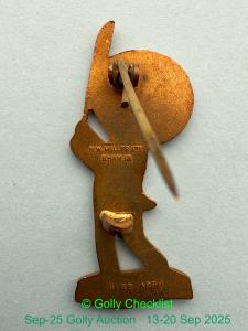 One of the set of 17 county cricketers representing all first class county cricket teams. These beautiful designs were manufactured by the high quality badge maker H.W.Miller of Birmingham and issued by Robertsons in 1938. Certified as genuine by the Miller backstamp to reverse.
