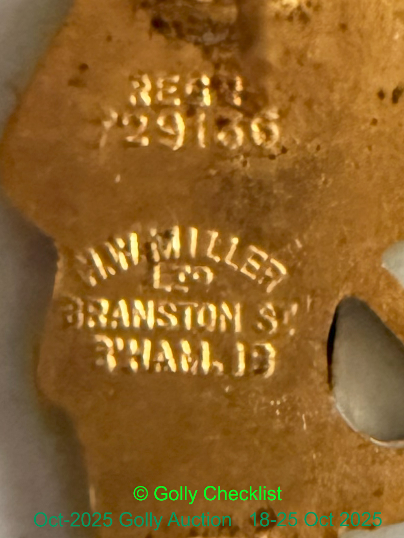 BACKSTAMP: Miller Type IB ii clearly defined stamp. The REGd number is 729136 and is stamped above the Miller backstamp (it can also be found stamped below on some designs).