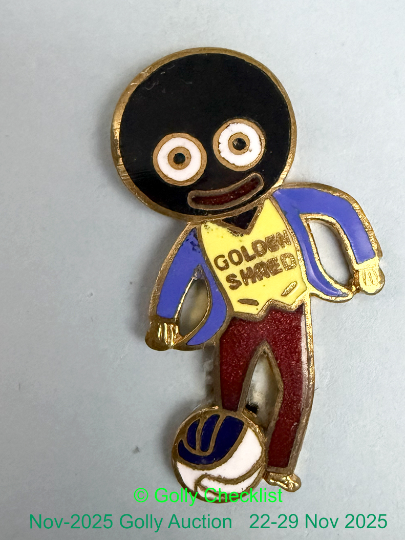 DESCRIPTION: Prewar Footballer with small dark blue and white ball. Made by 'Greens B'HAM' with BLACK V-NECK.