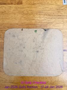 CONDITION: In used condition. This showcard has some felt missing to front and crayon marks to rear. Original string missing and holes compromised. This item comes from the collection of one of the world's leading Golly enthusiasts. The front shows '1|4' written in small letters on the letter 'U'. .