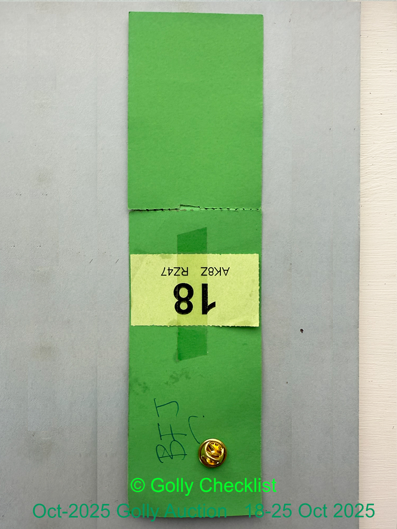 Un-numbered to reverse it is recorded in the Golly Guide as SLC-X2-11b-1. It is known that only 33 of these badges were produced. See section W in the Golly Guide for further information.