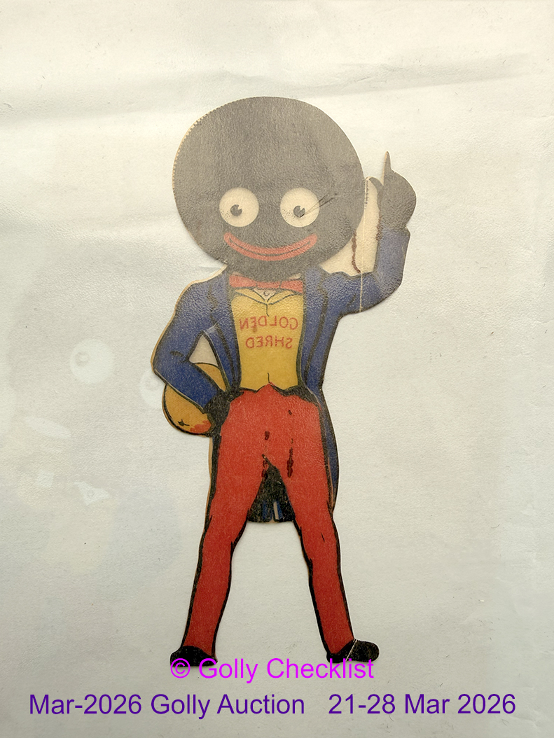 DESCRIPTION: An early cellophane sticker/transfer showing a one arm raised Golly holding orange. Showing Golly in an old style. Bright and colourful, a delicate item that is very difficult to find. Another lovely example of early Robertsons ephemera. If you collect Golly items from the stickers section H, don't miss out on this or you may have to wait a while to find another.