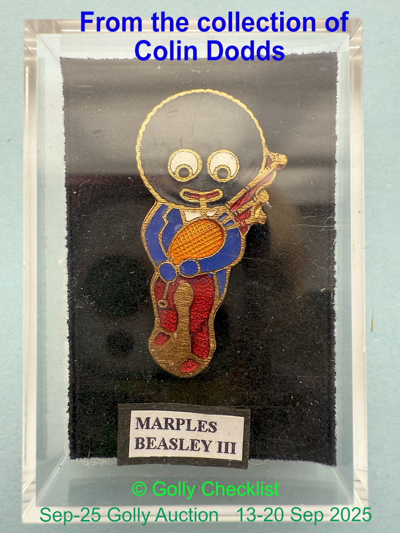 DESCRIPTION: A White Waistcoat Bagpiper badge made by MARPLES & BEASLEY with a