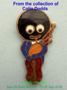 CONDITION: Presented in excellent condition. No chips or scratches however a small stress mark is visible in the lower part of the one leg. Metal is clean. Complete with original straight pin and clasp. A chance to pick up one of the more difficult bagpipers at a good price.
