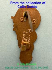 CONDITION: Presented in very good condition. Enamel is very clean, free from cracks, chips and stress marks, metal is bright. Please note the enamel overrun of white waistcoat onto jacket and bag. Complete with original straight pin and clasp.