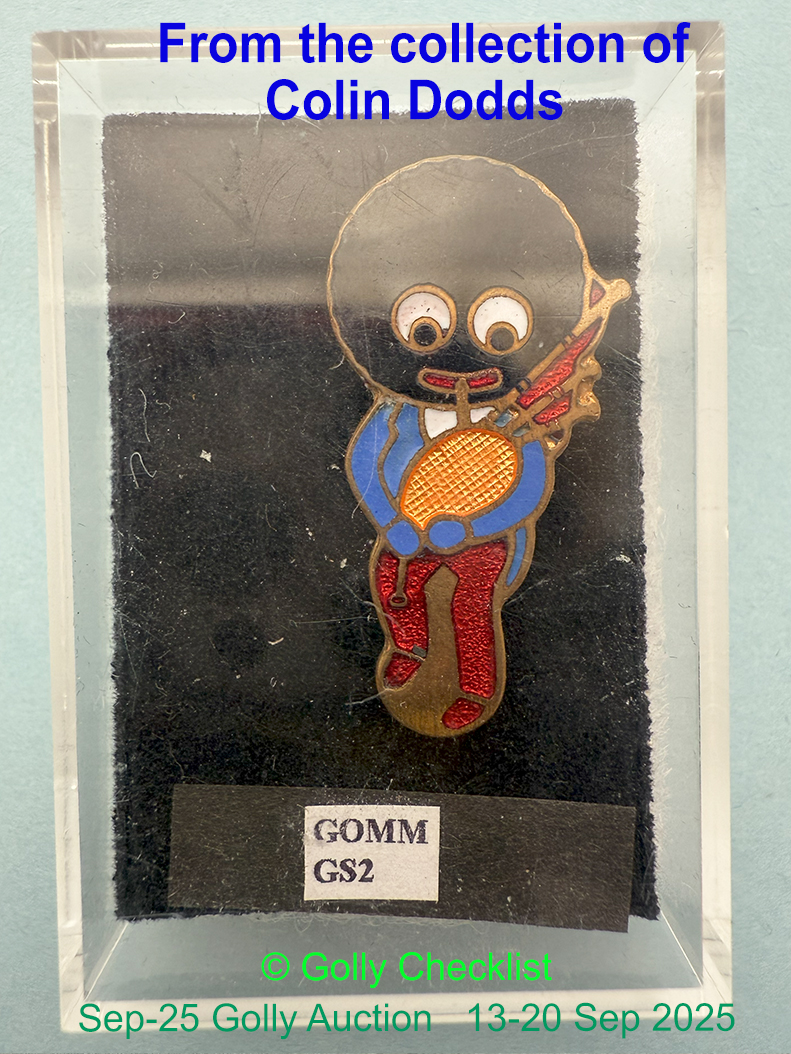 DESCRIPTION: A White Waistcoat Bagpiper badge made by REV GOMM with a