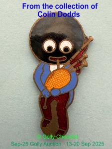 DESCRIPTION: A White Waistcoat Bagpiper badge made by REV GOMM with a