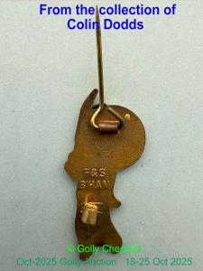 dark blue jacket. Black hands and feet. Although this is a fairly common design it is in not easy to find them in such good condition. A great candidate to upgrade an existing badge in your collection.