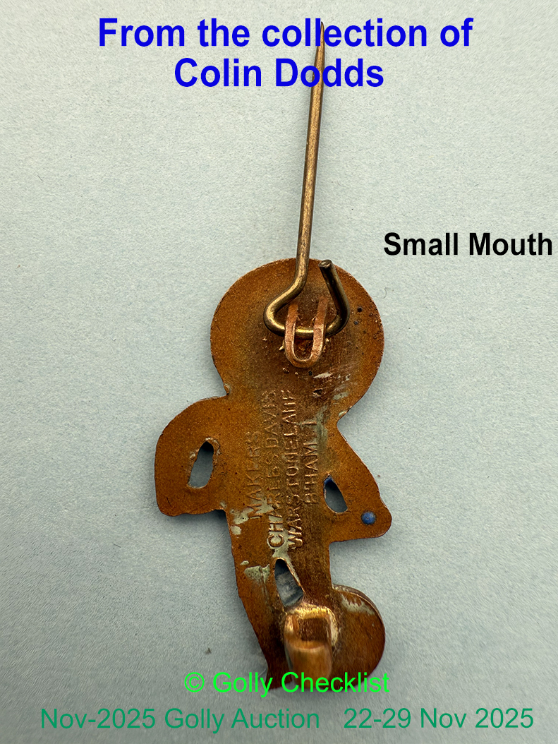 DESCRIPTION: A White Waistcoat Footballer badge made by Charles Davis with a light blue jacket. Metal hands and feet. This is the variation with