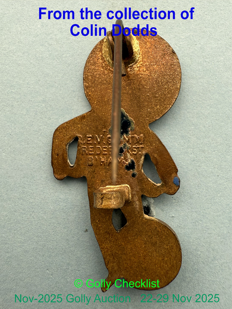 DESCRIPTION: A White Waistcoat Footballer badge made by REV Gomm with Orange Ball, a LIGHT blue jacket, metal hands and feet.