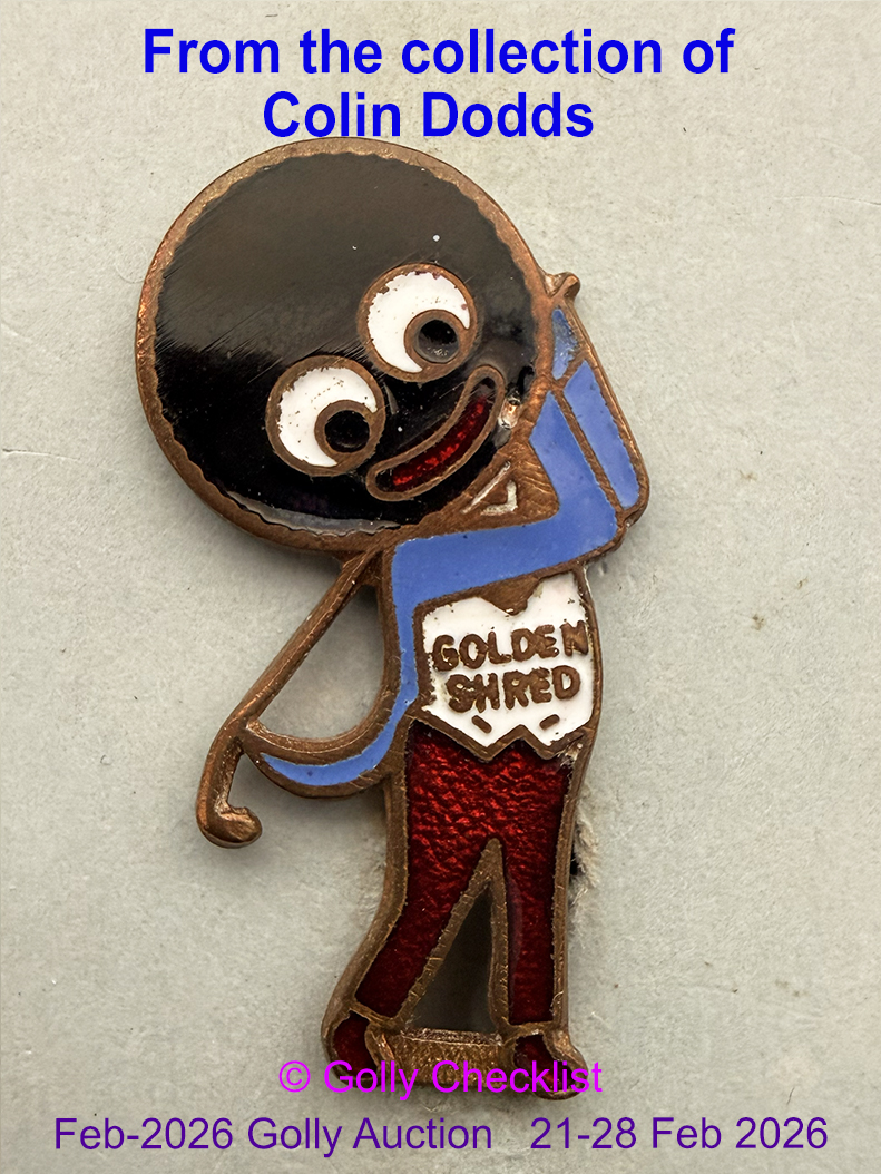 CONDITION: In excellent condition. Please note, close inspection shows slight underfill of enamel underneath Golly's left pocket. Barely visible to the naked eye. Mentioned for completeness. Please see image for details.