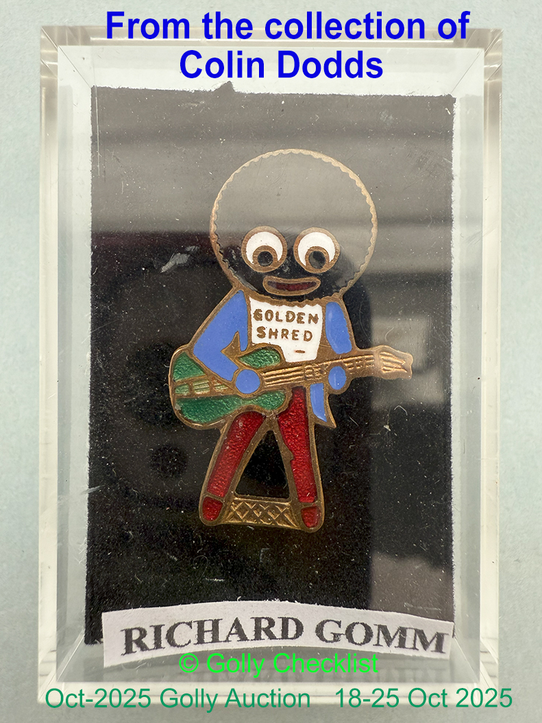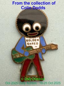 DESCRIPTION: A White Waistcoat Guitarist badge made by 'Richard Gomm' with a light blue jacket. A nice example of a badge, not easy to find in such good condition.